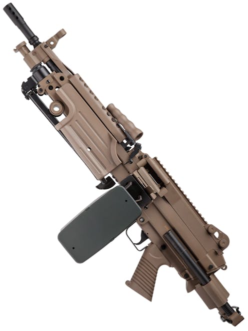 The Specna Arms SA-249 series are a range of Airsoft Light Machine Guns, with extra emphasis on light, that accurately replicate the M249 series of 5.56x45mm NATO LMGs. They are built using Alloy for the important sections such as the Outer Barrel Assembly, Magazine Well and Stock, but have used Polymer where possible (Receiver, Handguard etc.) to keep it at a usable weight. That being said, this model still clocks in just short of 5kg, making it very solid. Not only are they relatively easy to carry around the skirmish field, but they are equipped with the usual Specna goodies such as a Quick Change Spring System, Micro-switch Trigger Unit and Rotary HOP Unit, which makes them slick and easy to tinker with.